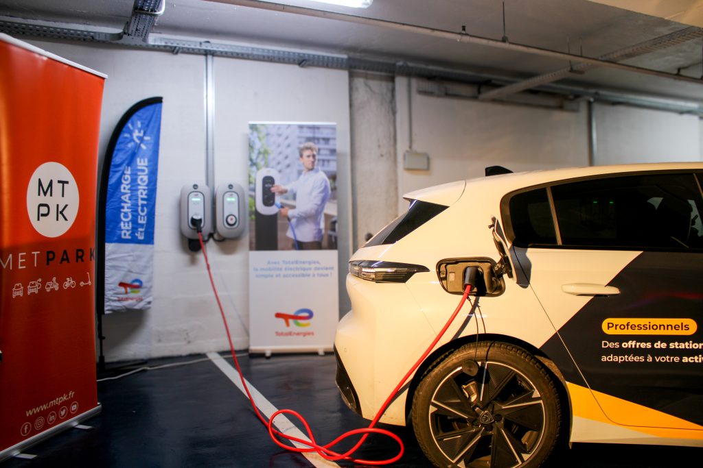 Dans le cadre de son partenariat avec TotalEnergies, METPARK a installé 47 bornes de recharge au niveau -1 du parking.