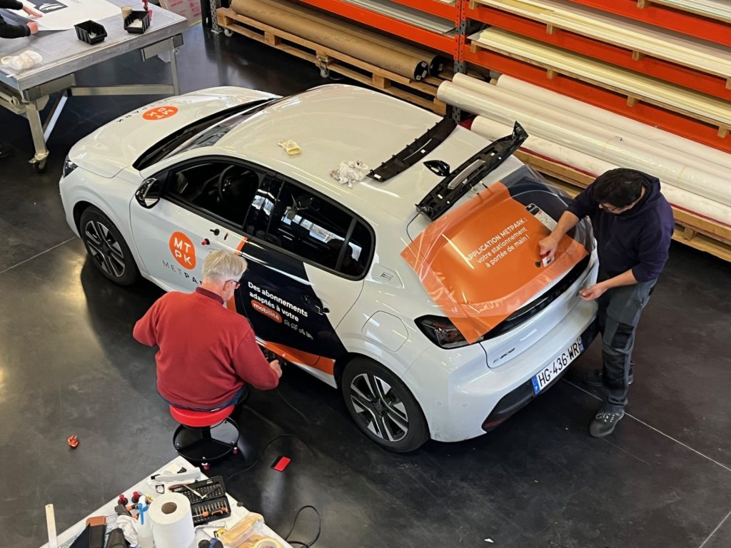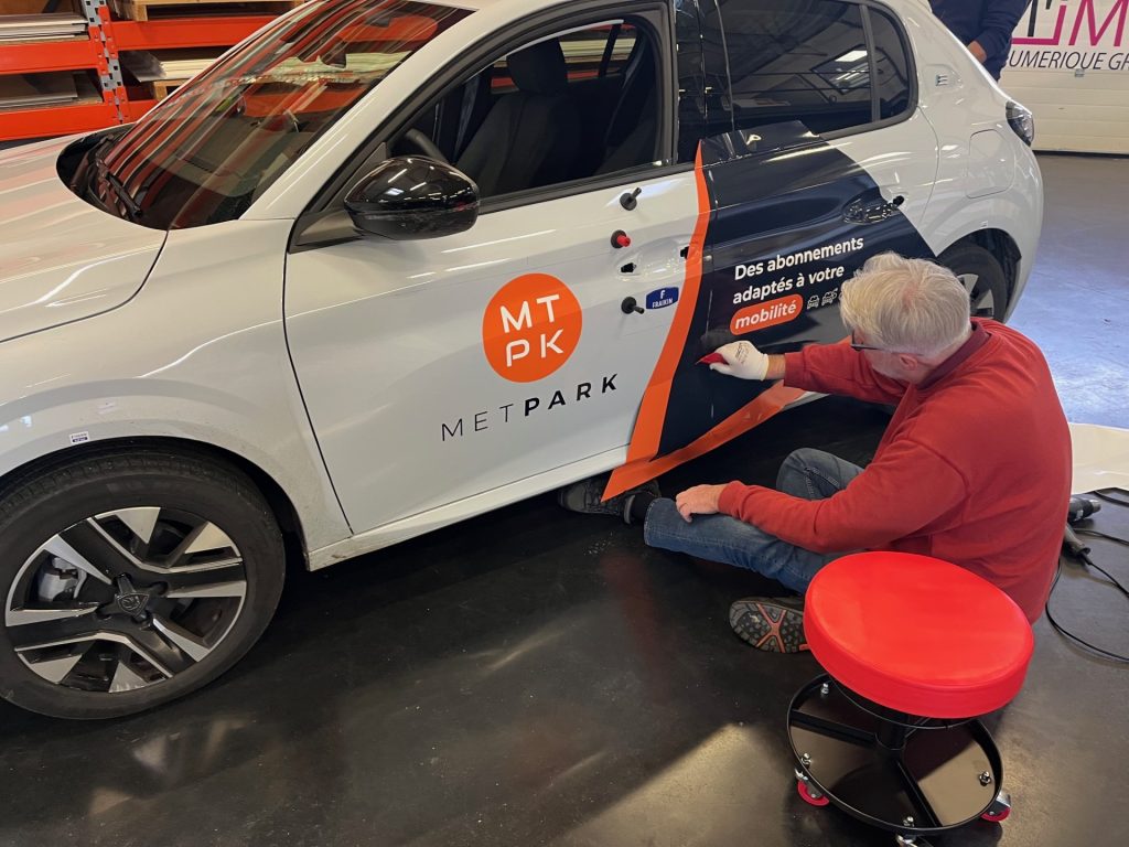 Ces nouveaux véhicules participent également à la visibilité des services METPARK. Grâce à un covering realisé par NUMIMPRIM, chaque déplacement devient un point de contact avec les bordelais.